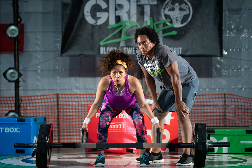 Playwright Kara-Lynn Vaeni, who also directs (brilliantly), has fashioned a semi-autobiographical piece that partakes of both the fish out of water and odd couple genres. The spine of the play is the shifting relationship between sassy, vocal, joke-cracking Puppy (the electric Annie Henk) and the stern, lets-set-goals James (a shape-shifting Will Cobbs). Does she get serious about her training; does he show his vulnerable side? Will she make it to lifting 250 lbs?